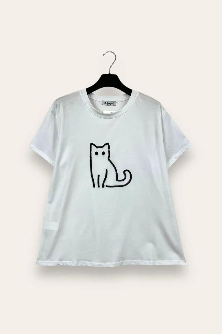 T-shirt con gatto ricamato