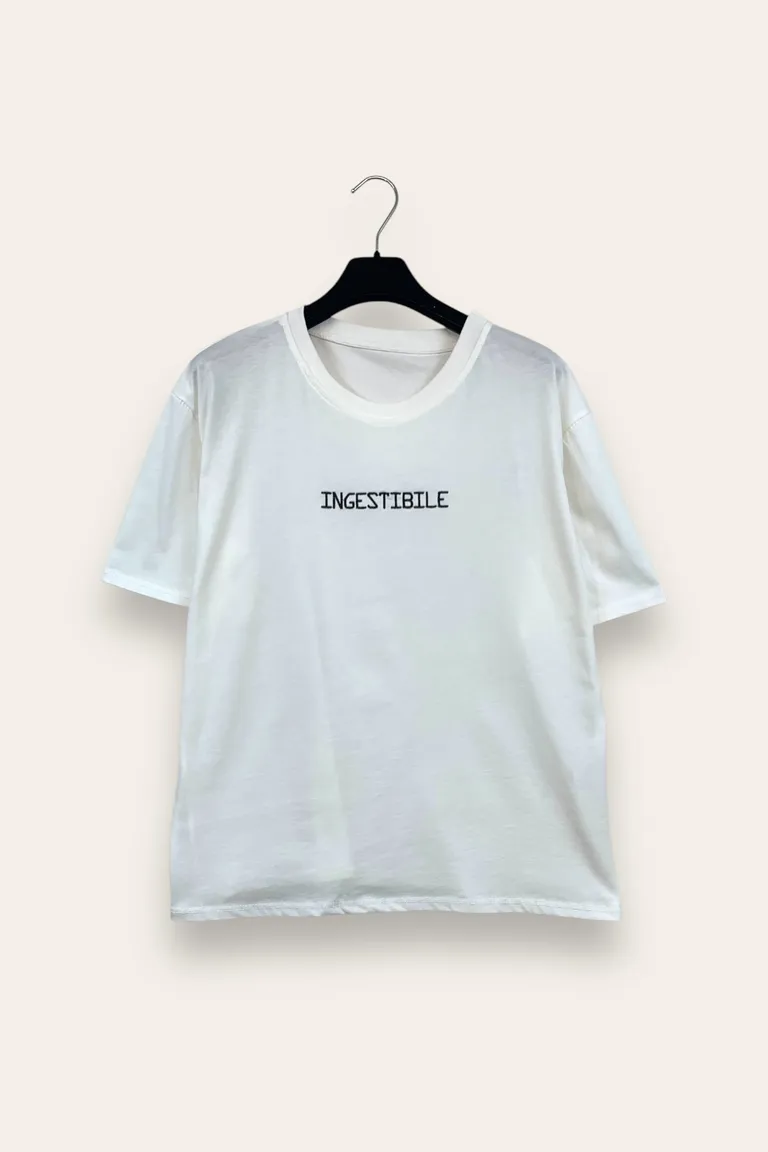 T-shirt con scritta ricamata “ INGESTIBILE ”