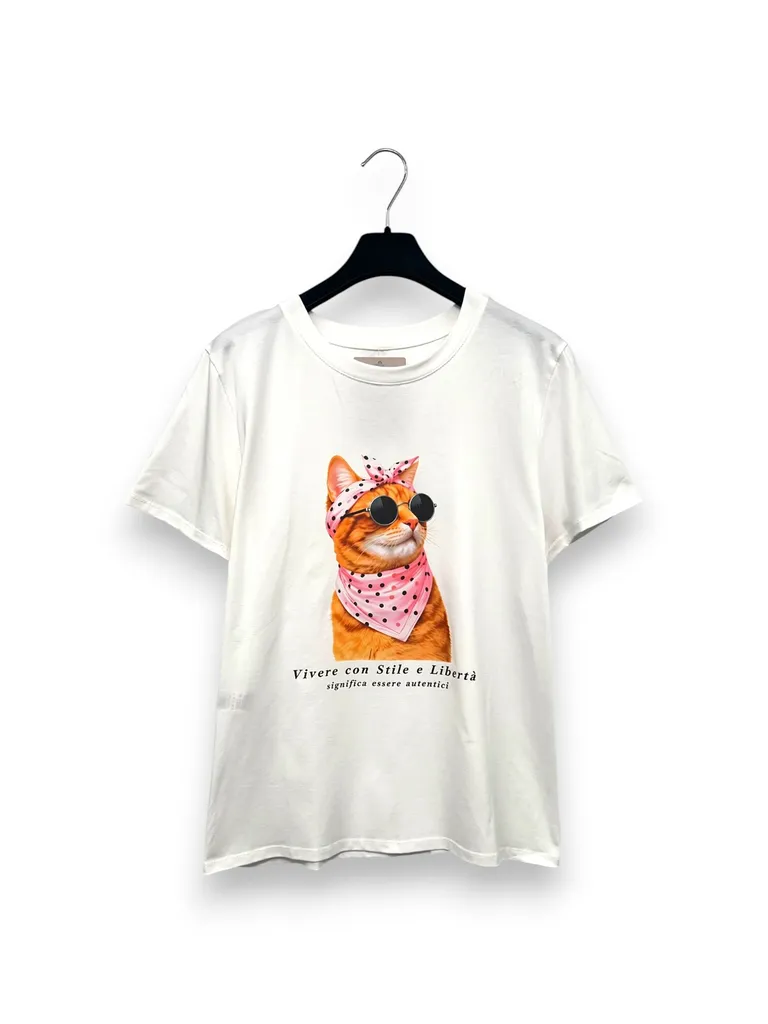 T-shirt con stampa gatto