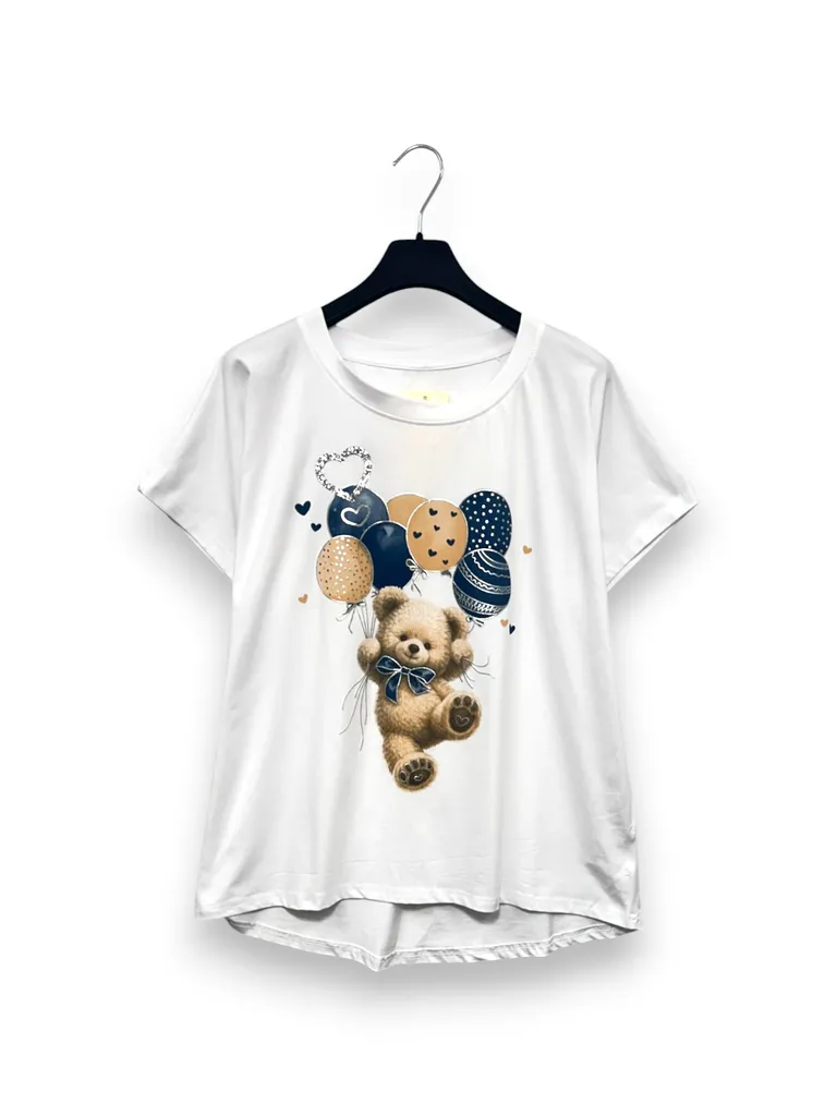 Descrizione T-shirt over stampa orsacchiotto con palloncini