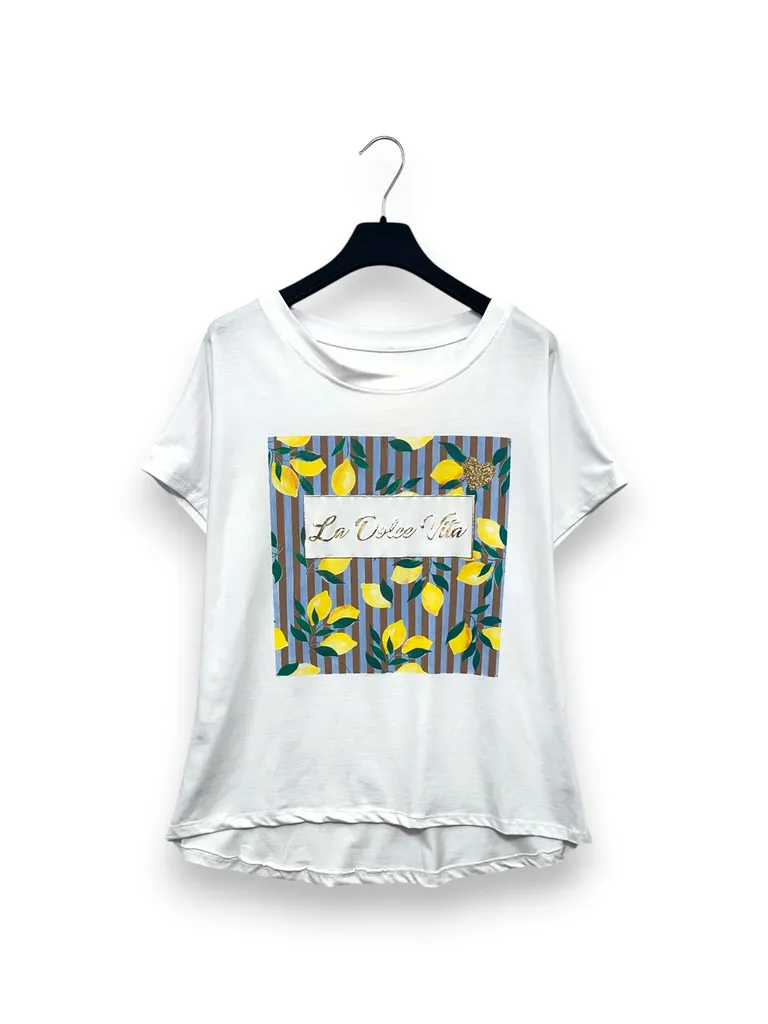 Descrizione T-shirt over stampa limoni “ la dolce vita”