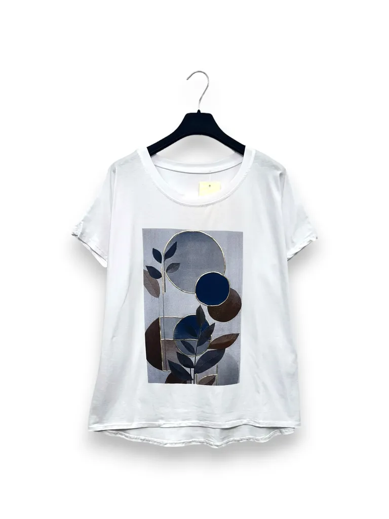 T-shirt over stampa foglie e cerchi