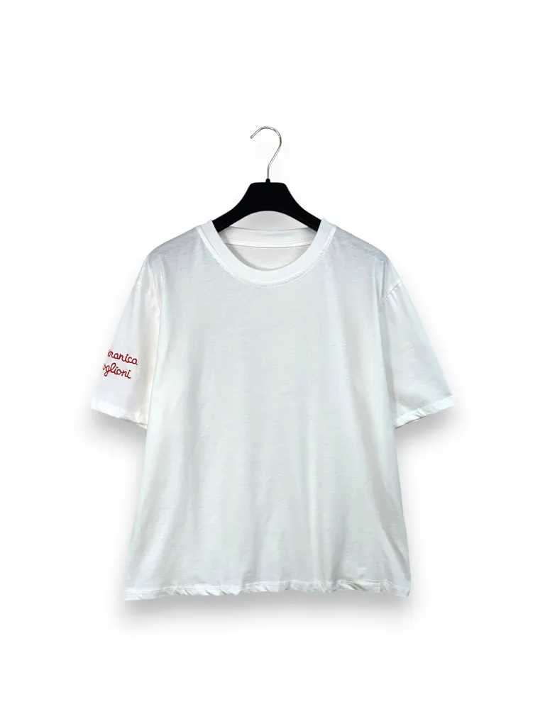 Descrizione T-shirt con scritta ricamata “Una manica di coglioni”