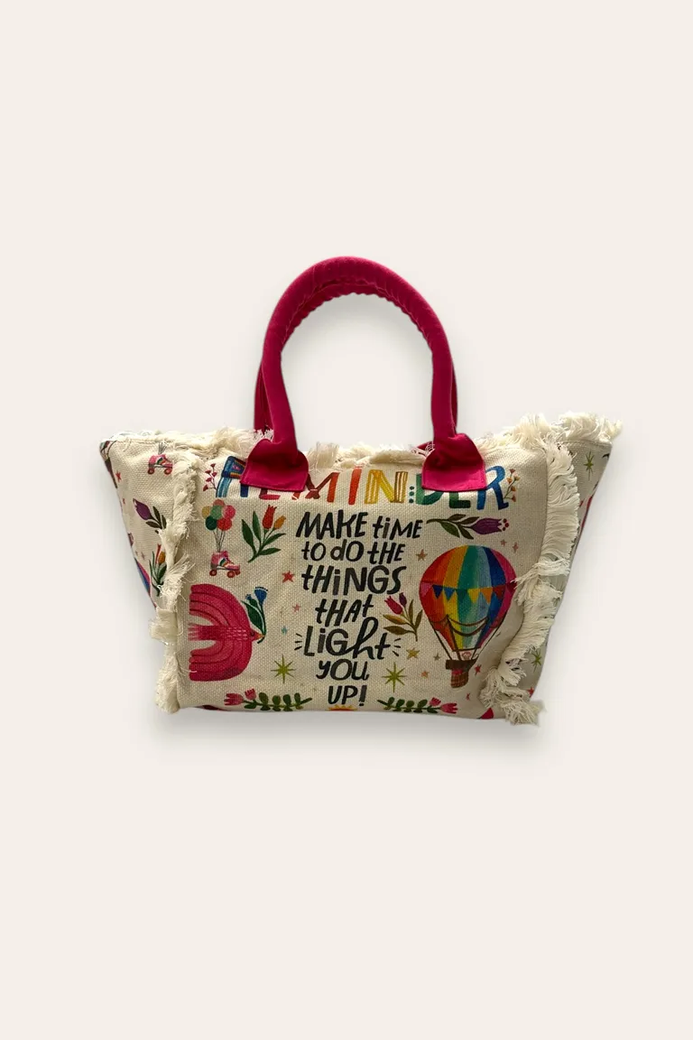 Shopping bag da mare con stampa estiva e frange (L50cm x H30cm)