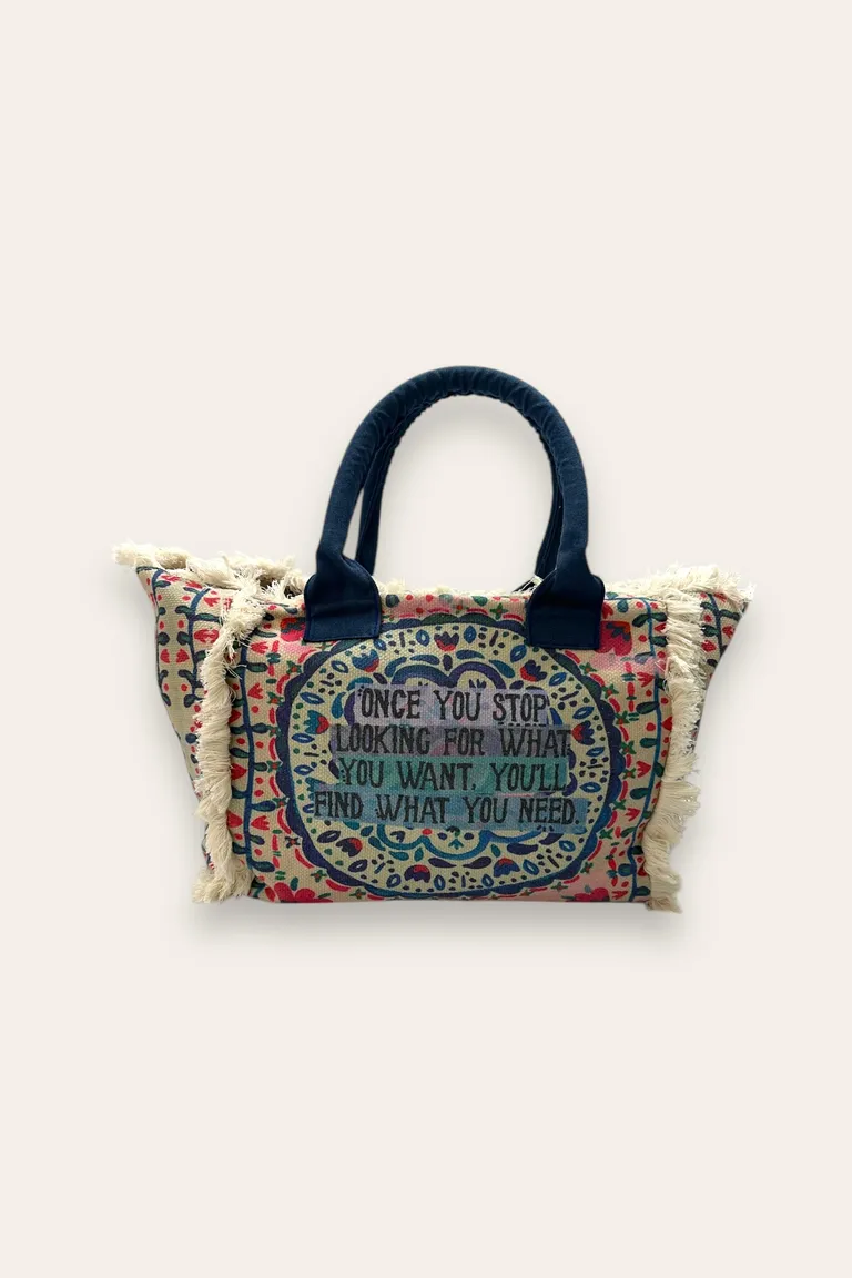 Description Shopping bag da mare con stampa estiva e frange (L50cm x H30cm)