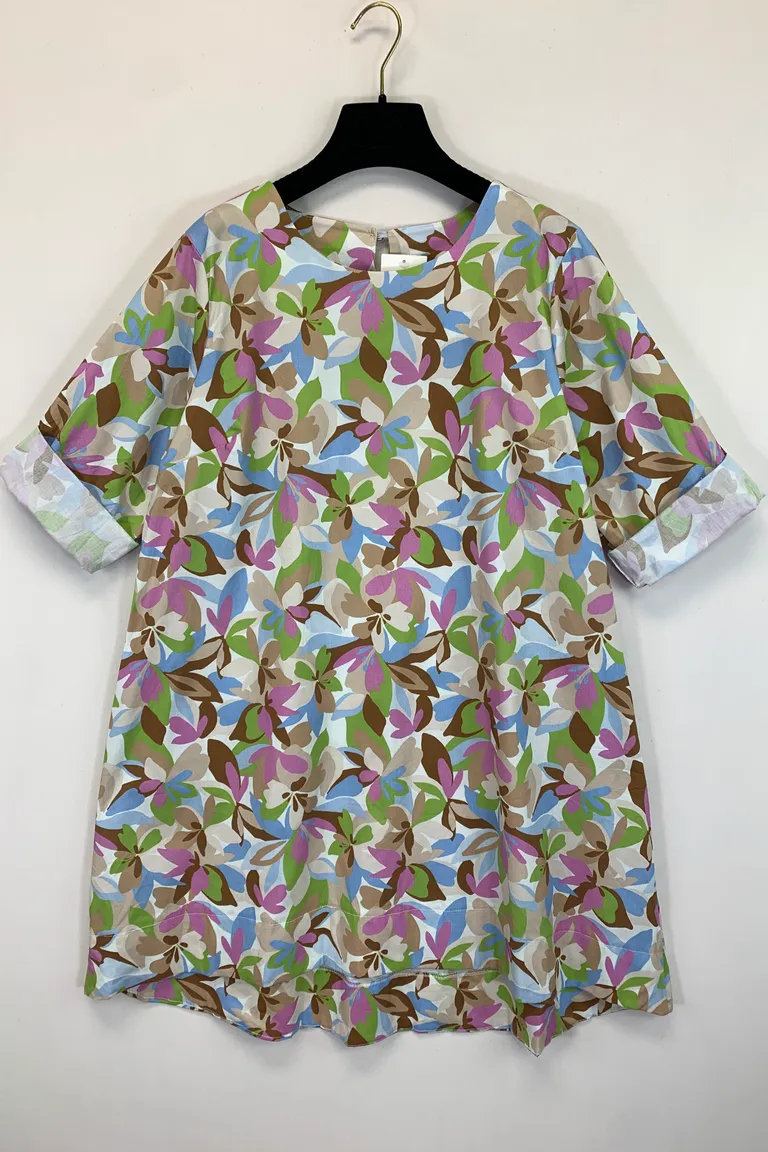 Abito girocollo, svasato, in fantasia, con tasche