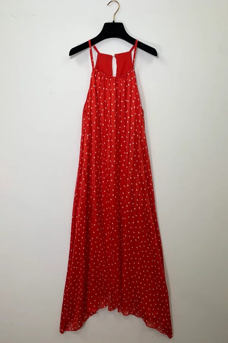 Description Abito in georgette a pois, spalle all’americana