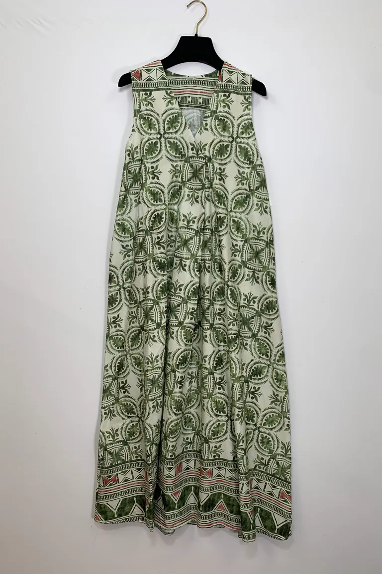 Abito smanicato con piega davanti, in viscosa in fantasia