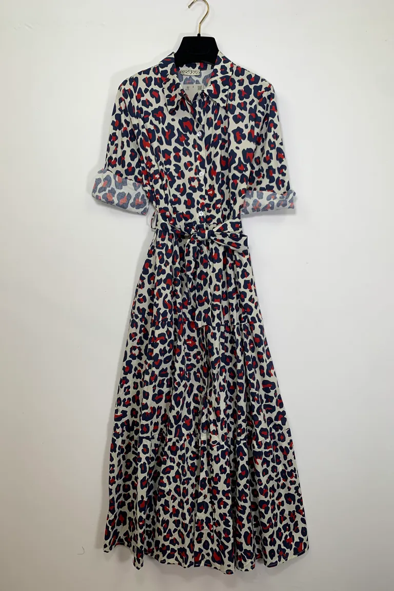 Abito chemisier a balze, fantasia animalier