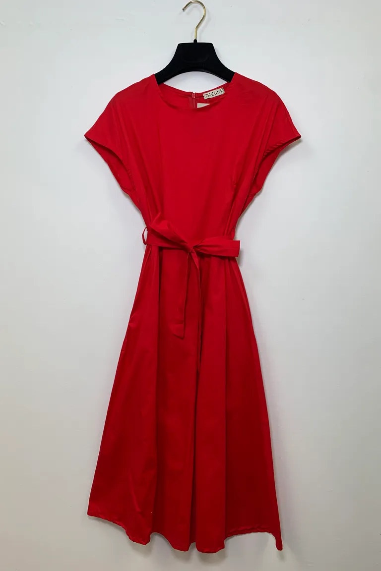 Description Abito svasato con fusciacca in vita e zip lungo la schiena