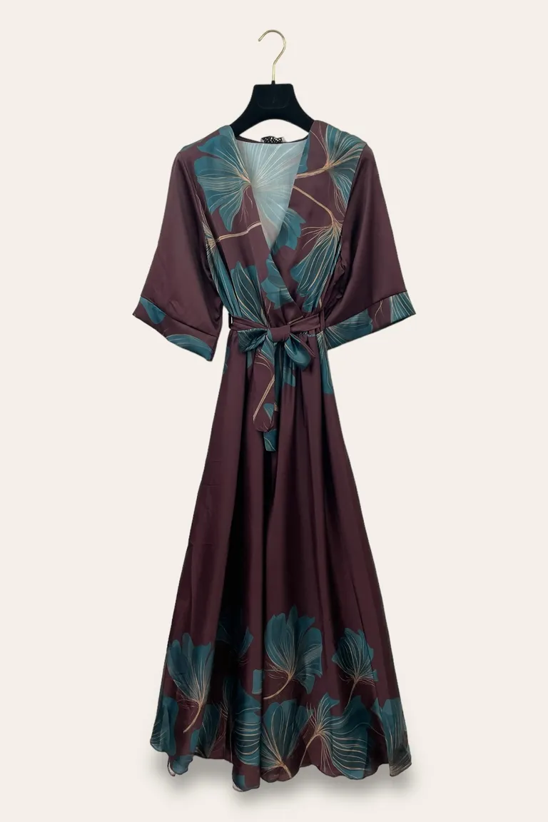 Abito in raso con scollo incrociato