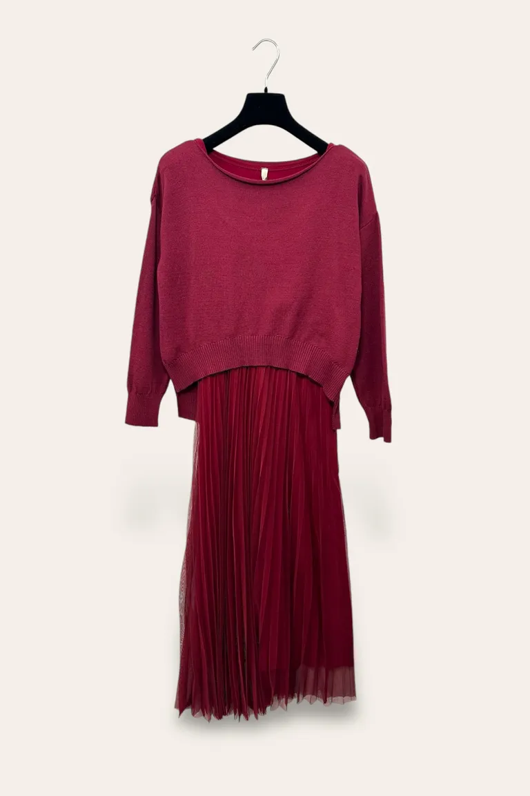 Description Completo abito con gonna in tulle plissè e maglia corta