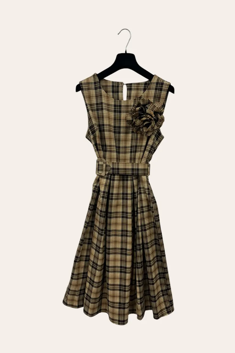Abito smanicato a quadri con spilla
