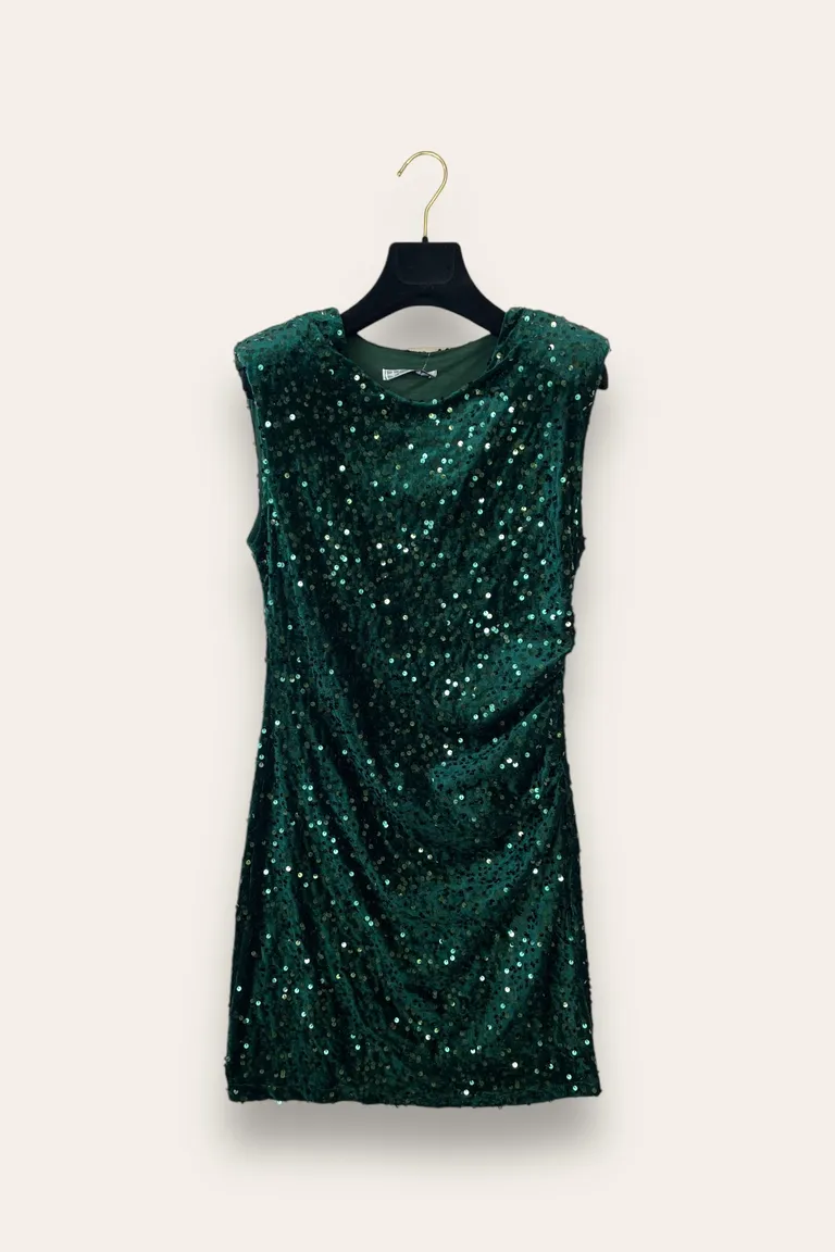 Description Abito smanicato in velluto e paillettes con arricciatura a fianco
