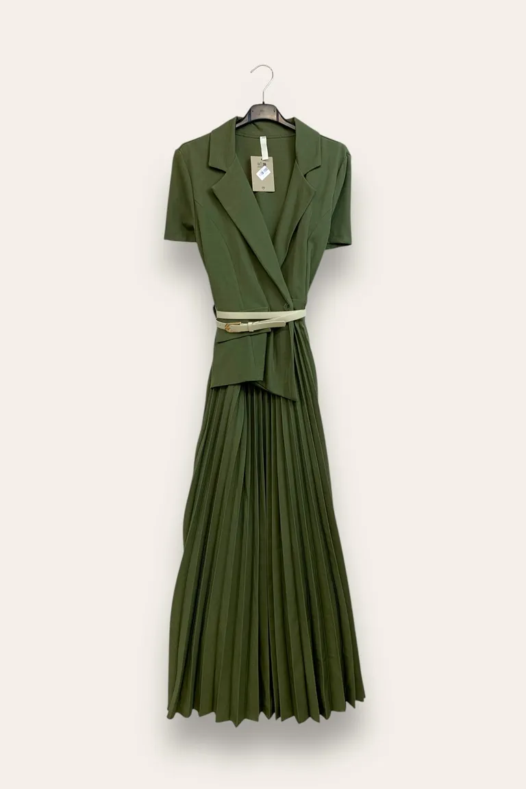 Abito con un bottone e gonna plissettata