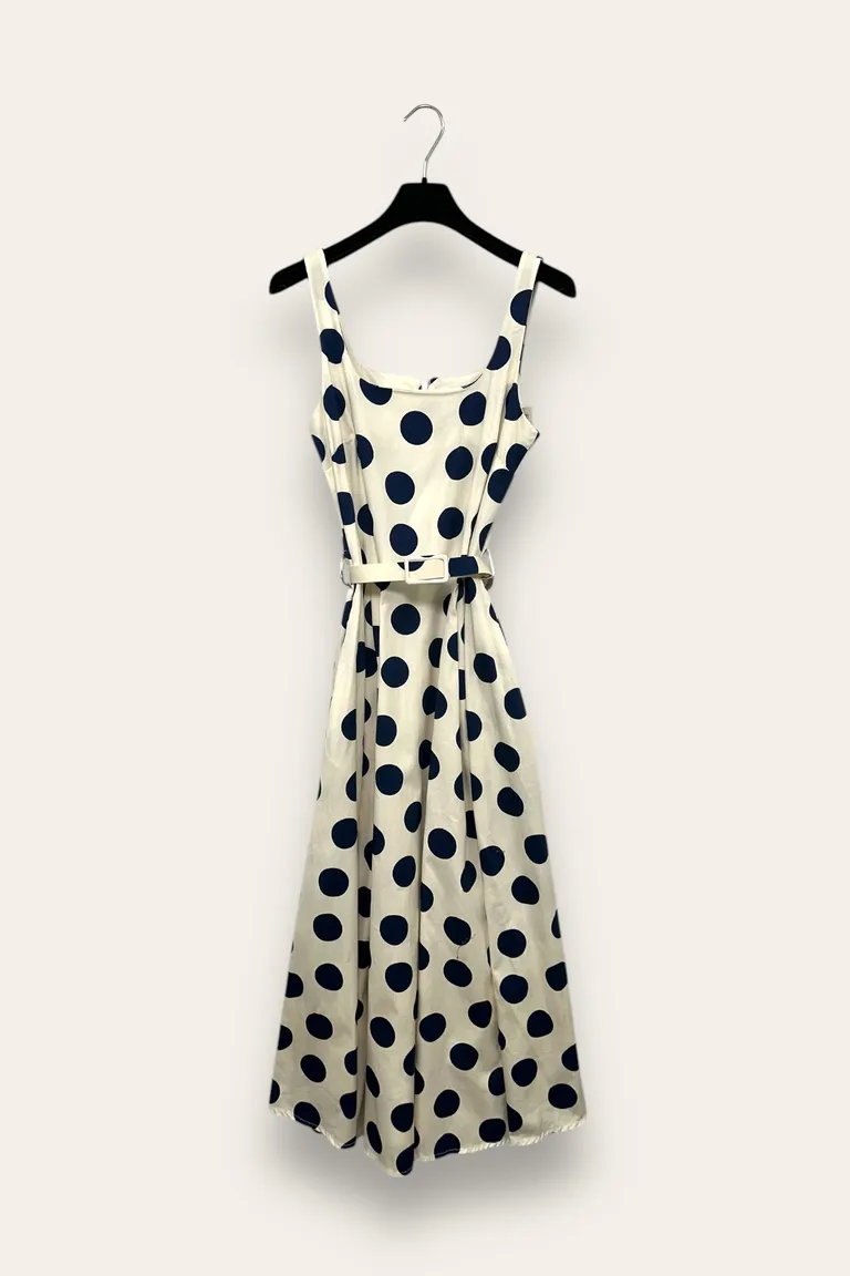 Abito svasato fantasia pois, con scollo quadrato