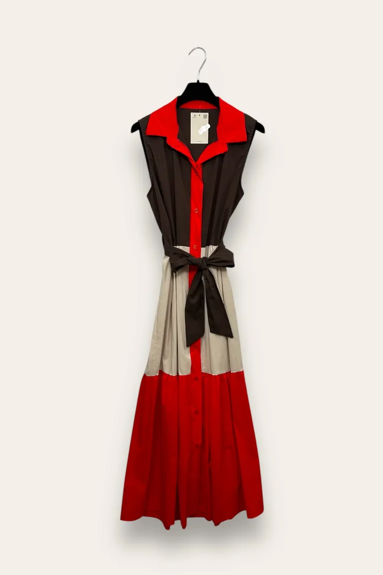 Abito patchwork smanicato in cotone