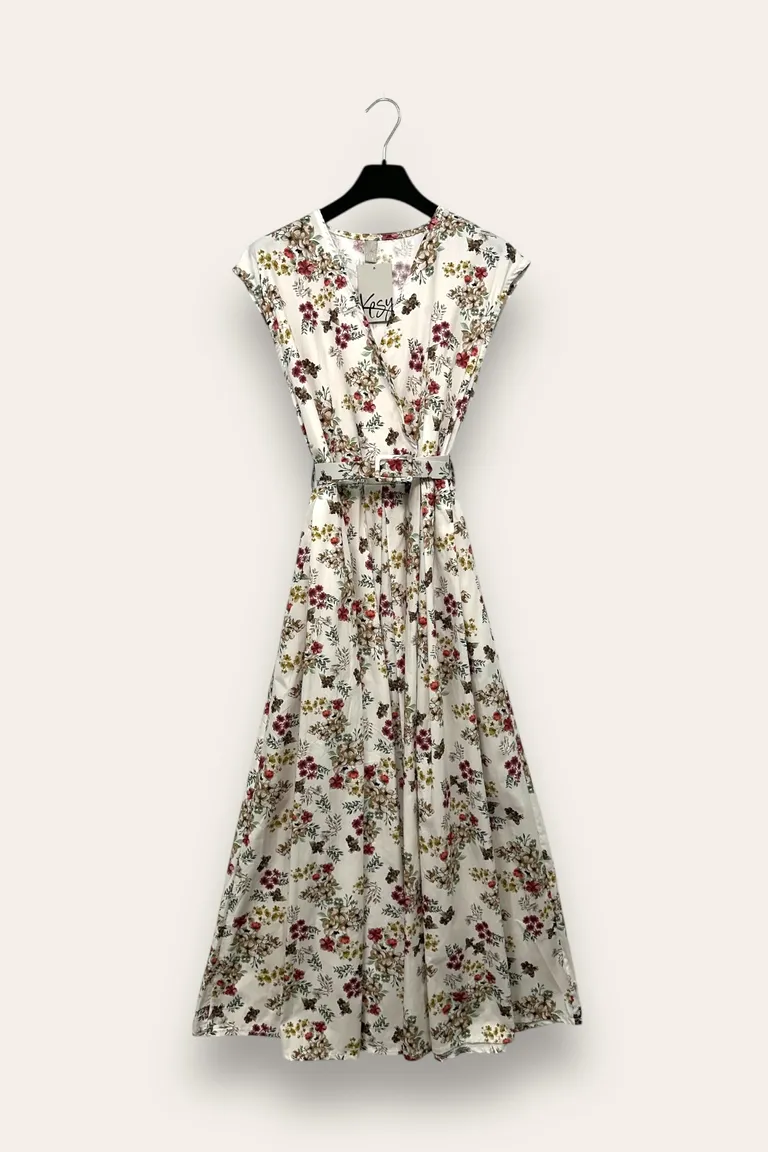 Abito lungo in fantasia con scollo incrociato
