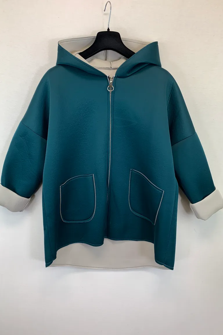 Cappotto ampio in scuba, tasche, zip e cappuccio