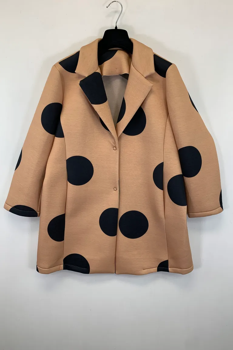 Description Cappotto neoprene a pois, con poussoir