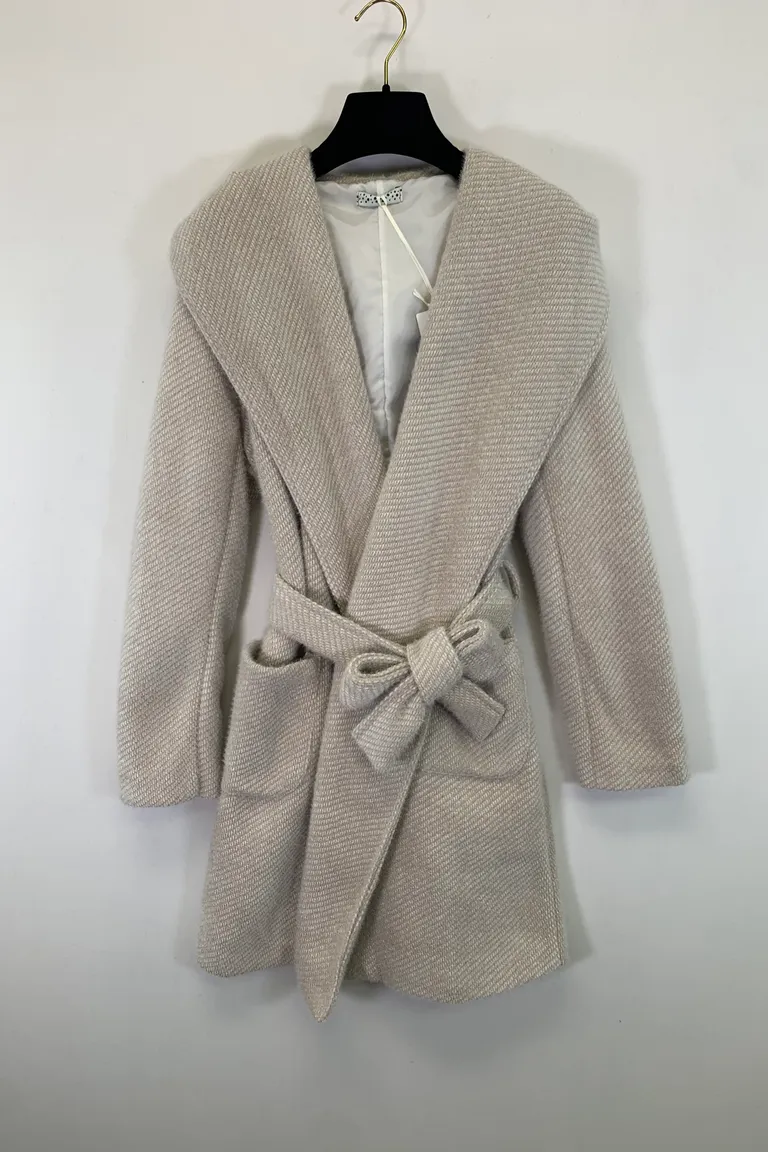 Cappotto peloso foderato, con cintura e cappuccio