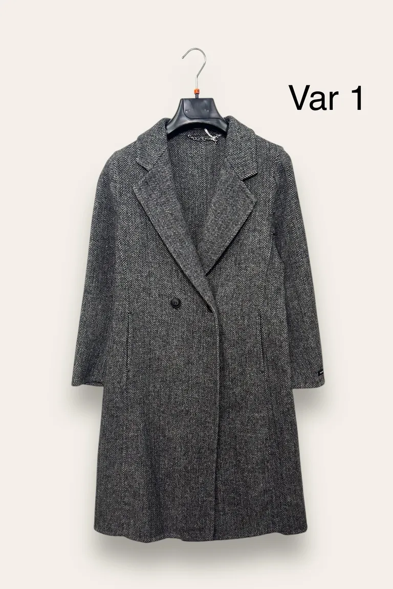 Description Cappotto doppiopetto tinta unita, spigato, principe di galles