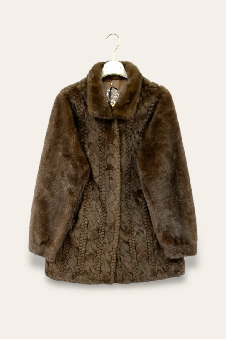 Cappotto in ecopelliccia con lavorazione e bottoni poussoir
