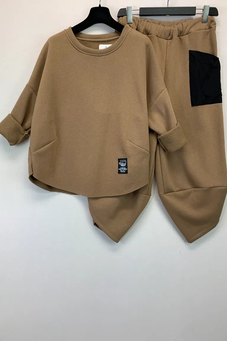 Description Completo in felpa con interno felpato e pantalone cavallo basso