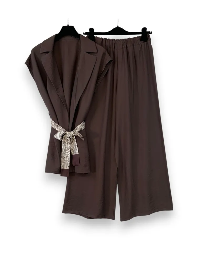 Description Completo gilet aperto con fusciacca e pantalone ampio