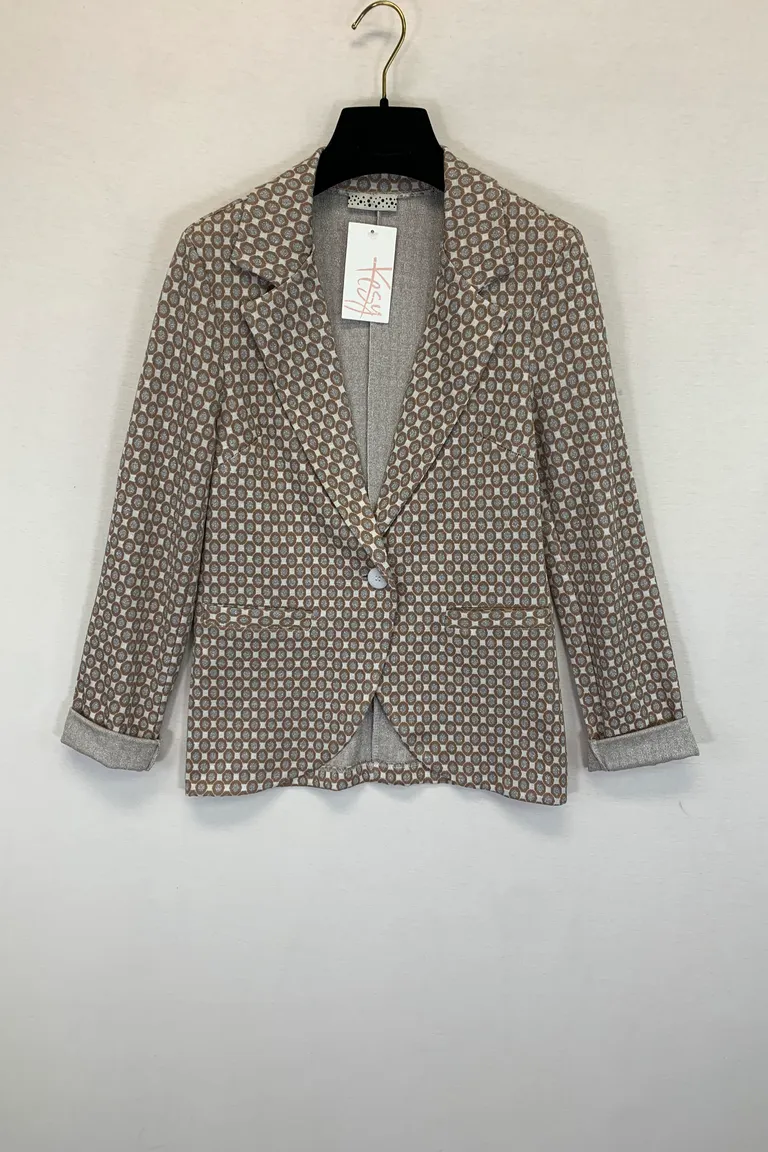 Description Giacca un bottone in fantasia, con lurex