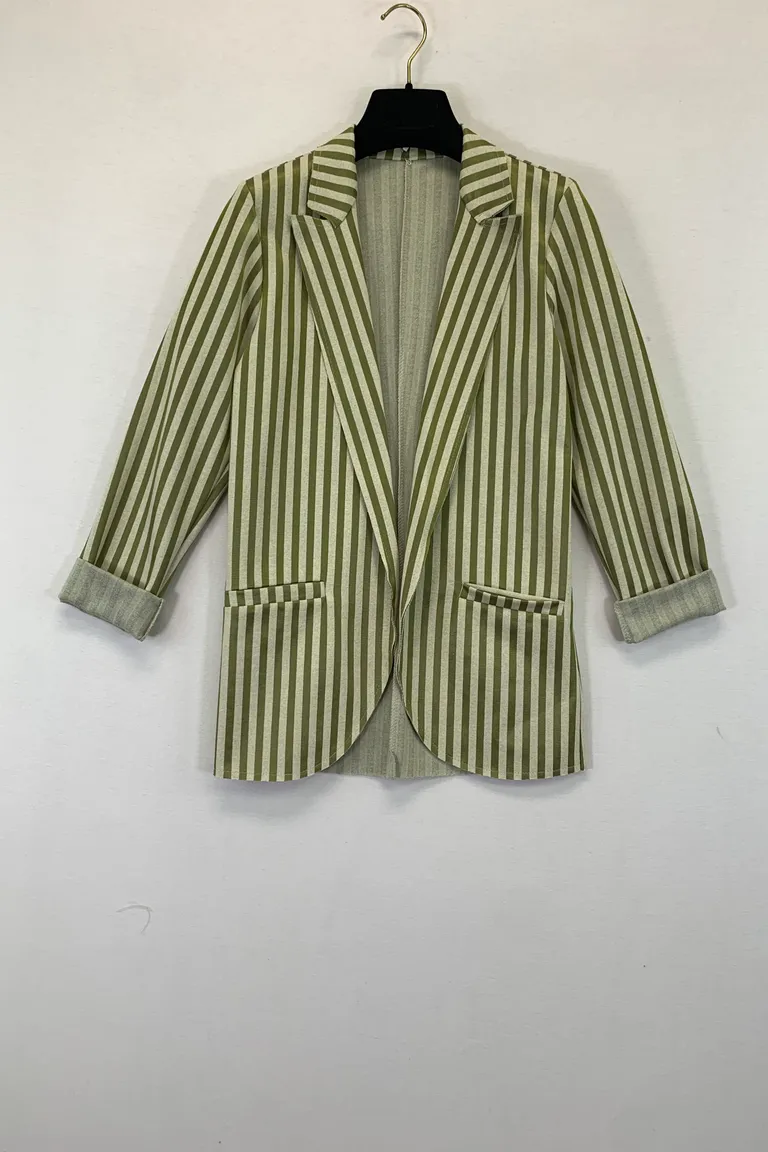 Giacca aperta a righe, effetto laminato