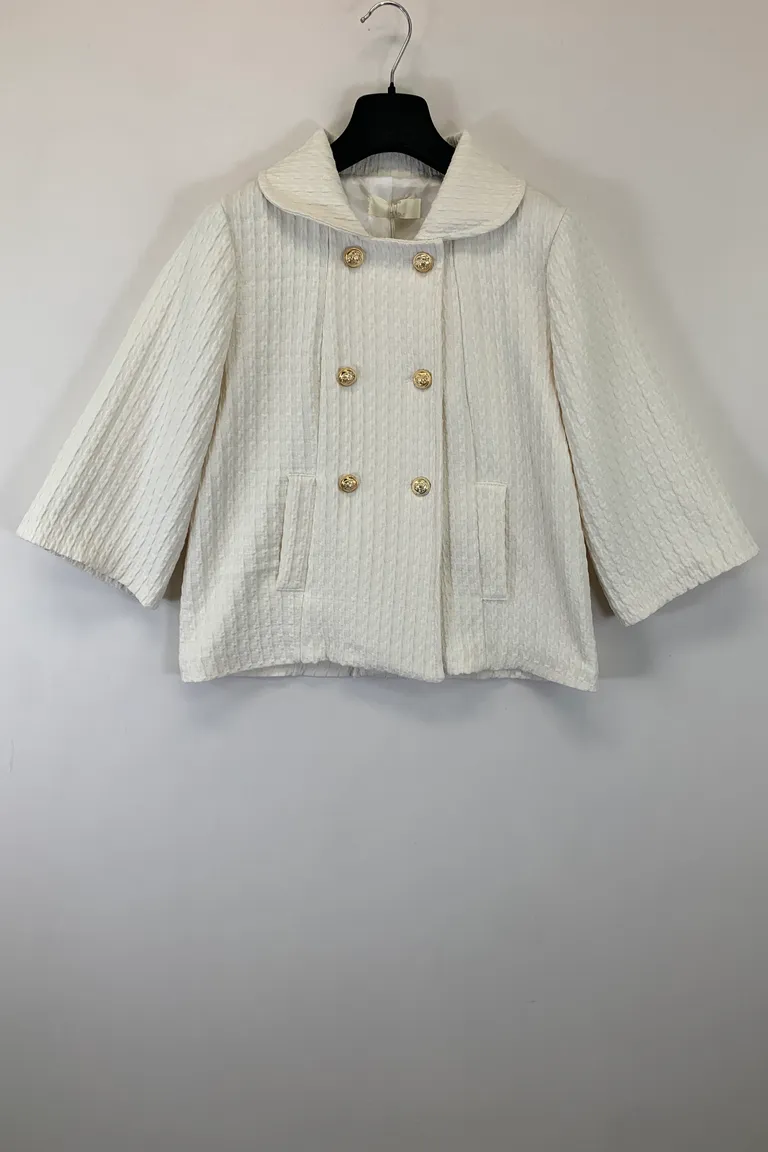 Description Giacca doppiopetto foderata con bottoni gioiello, tessuto goffrato