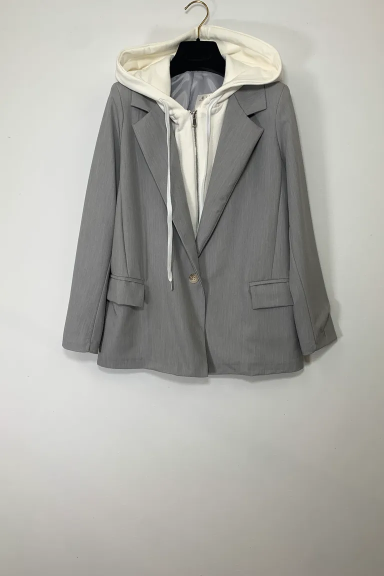 Description Giacca con inserti in felpa, zip e cappuccio