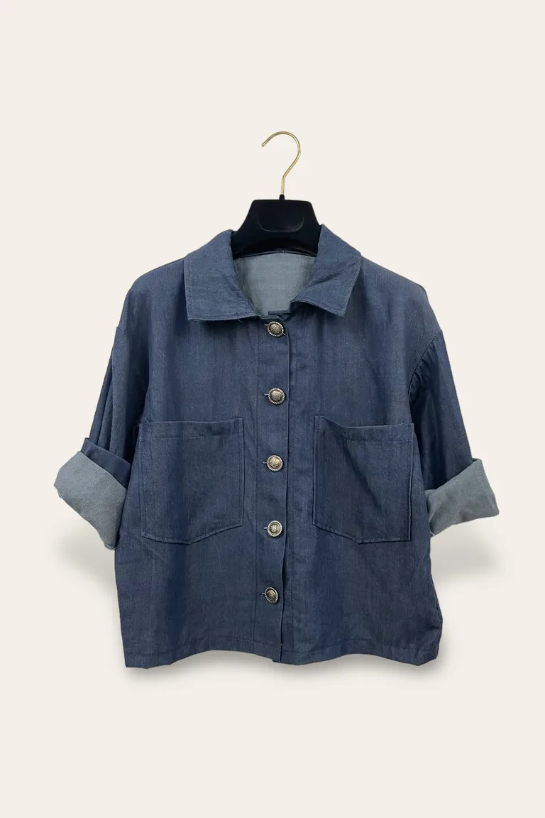 Camicia in tencel con bottoni gioiello