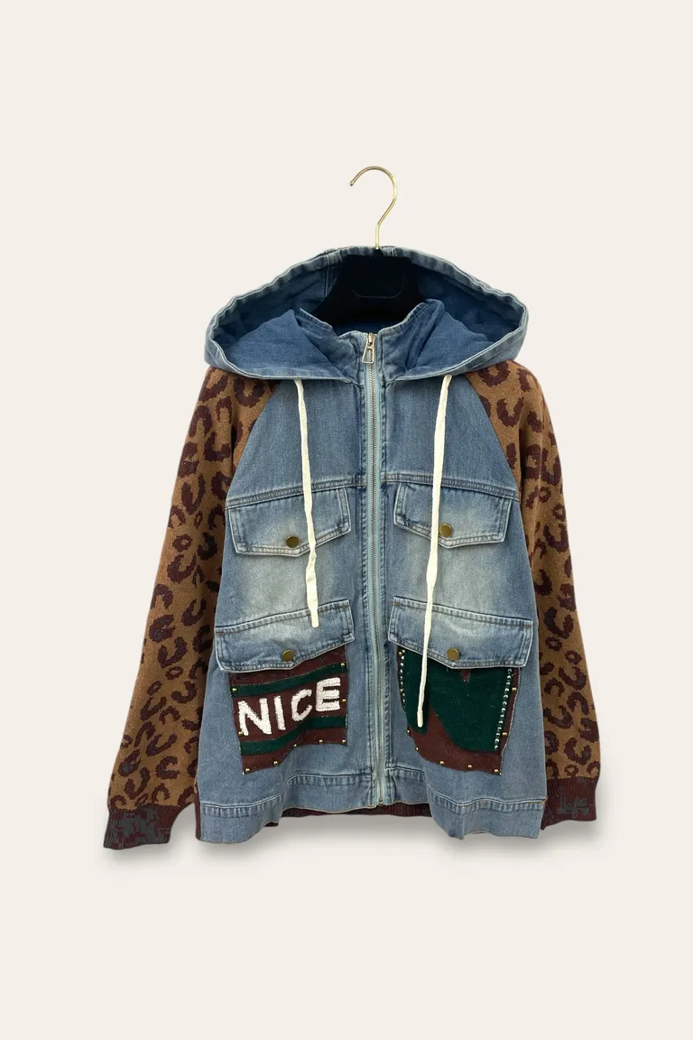 Giacca jeans e maglia con cappuccio