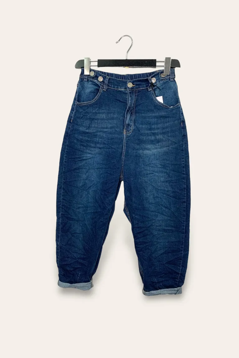 Description Jeans baggy, elastico retro vita e bottoni regolabili