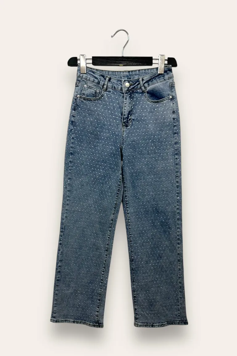 Jeans a gamba dritta con strass