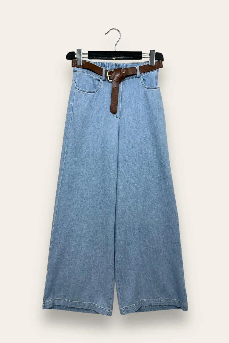 Jeans a palazzo morbido con elastico retro vita e cintura