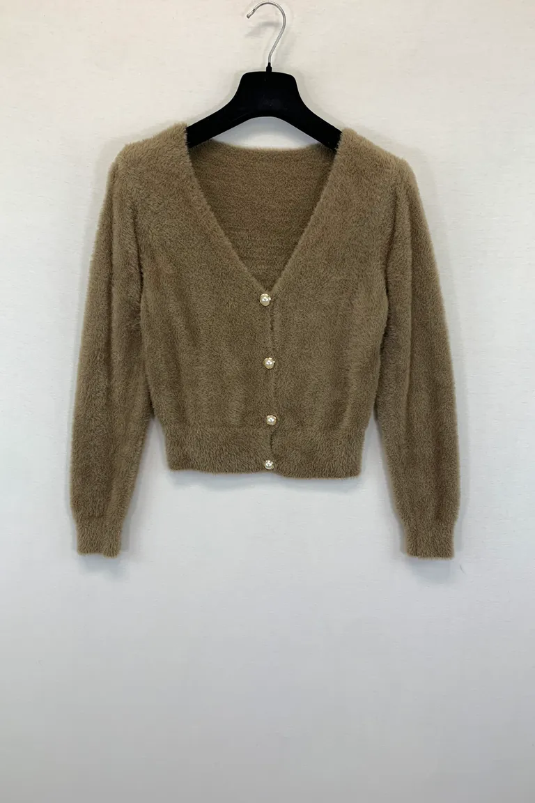 Golfino in maglia pelosa, con bottoni gioiello