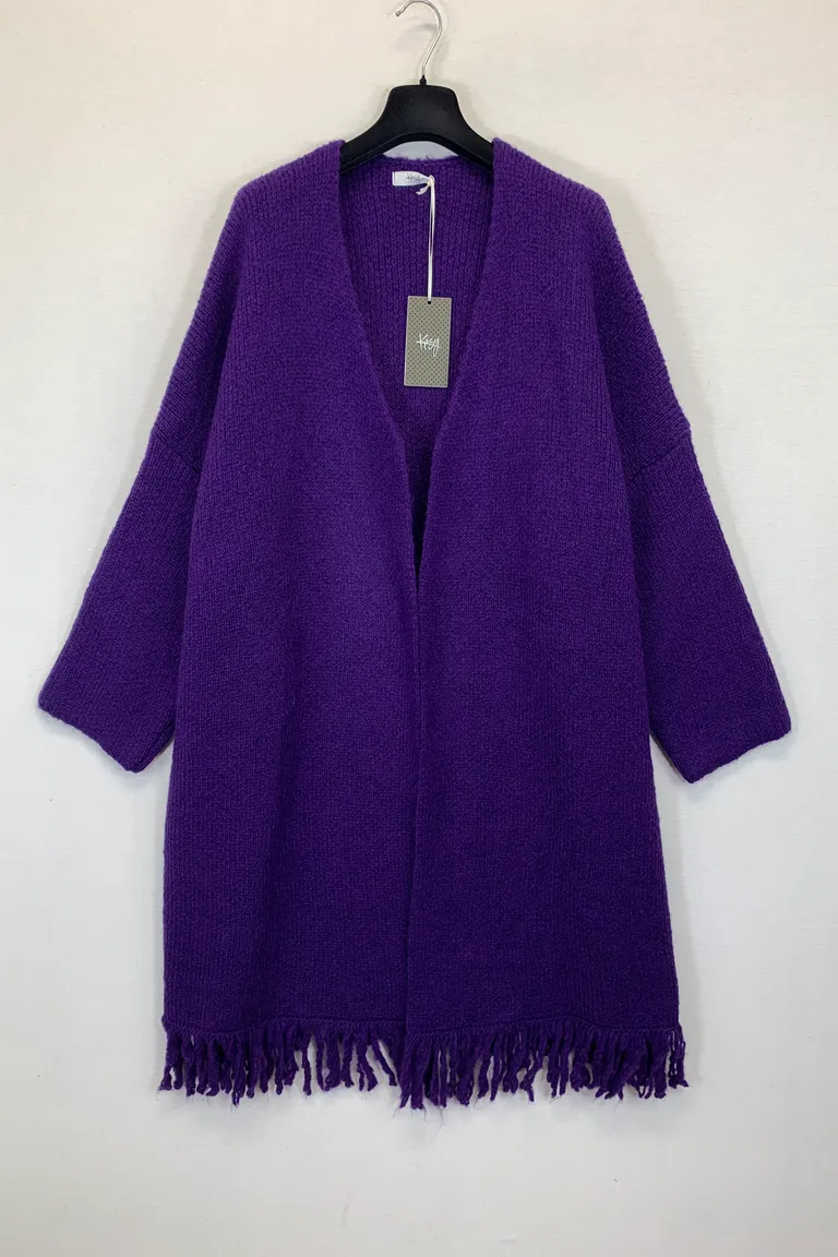 Cardigan ampio mistolana, con frange al fondo