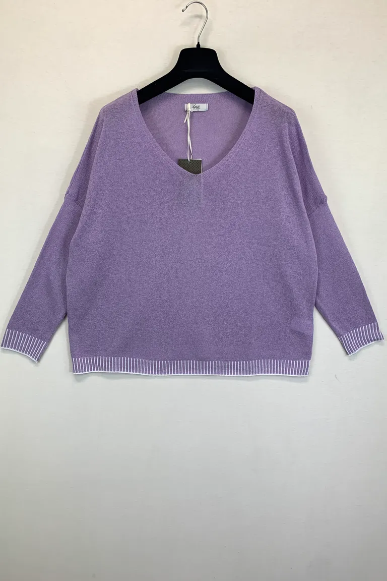 Maglia in cotone scollo V con profilo bicolore