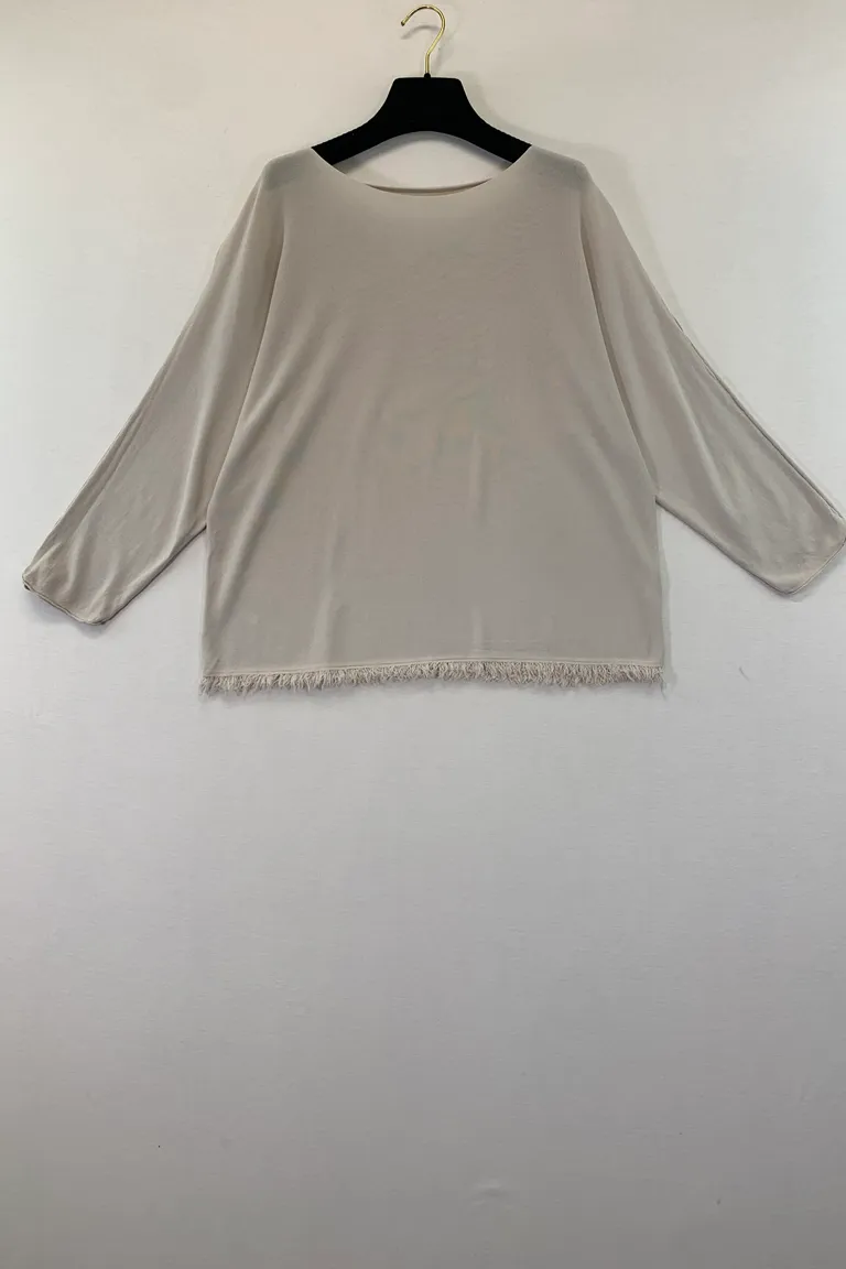 Maglia girocollo sfrangiata al fondo, manica a 3/4