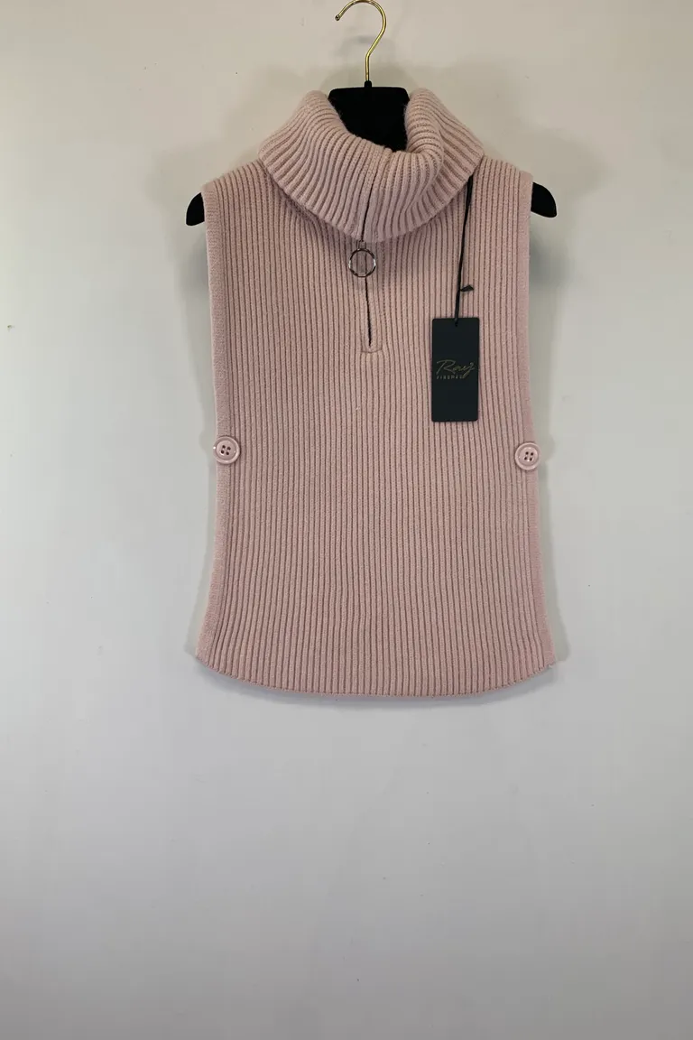 Description Gilet dolcevita a costine, aperta siu fianchi con bottone