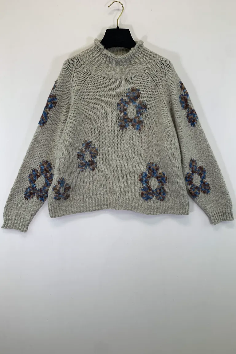 Description Maglia con collo a vulcano, misto lana, fantasia fiori colorati