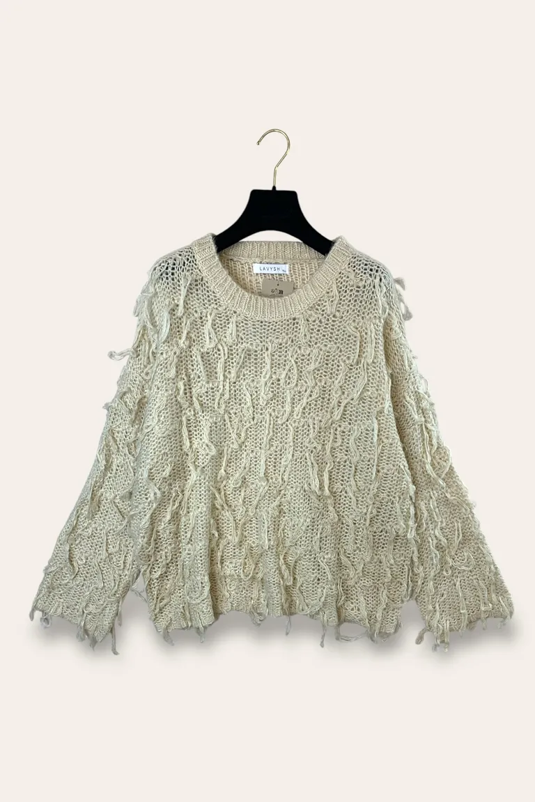 Maglia larga con tessuto sfilato