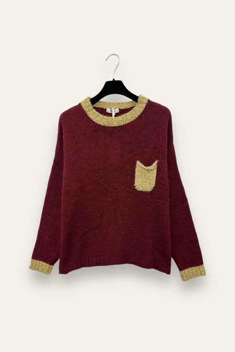 Description Maglia misto lana con taschino e profili a contrasto in lurex