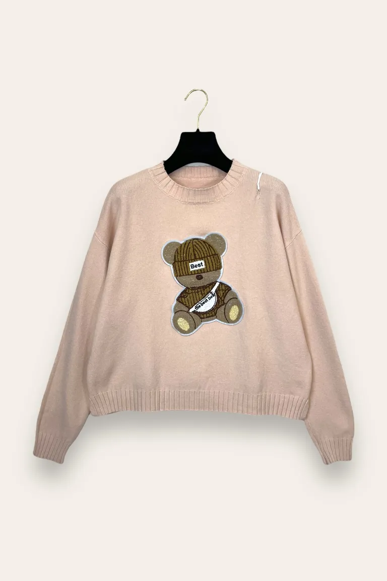 Description Maglietta con orso applicato ed profilo a coste