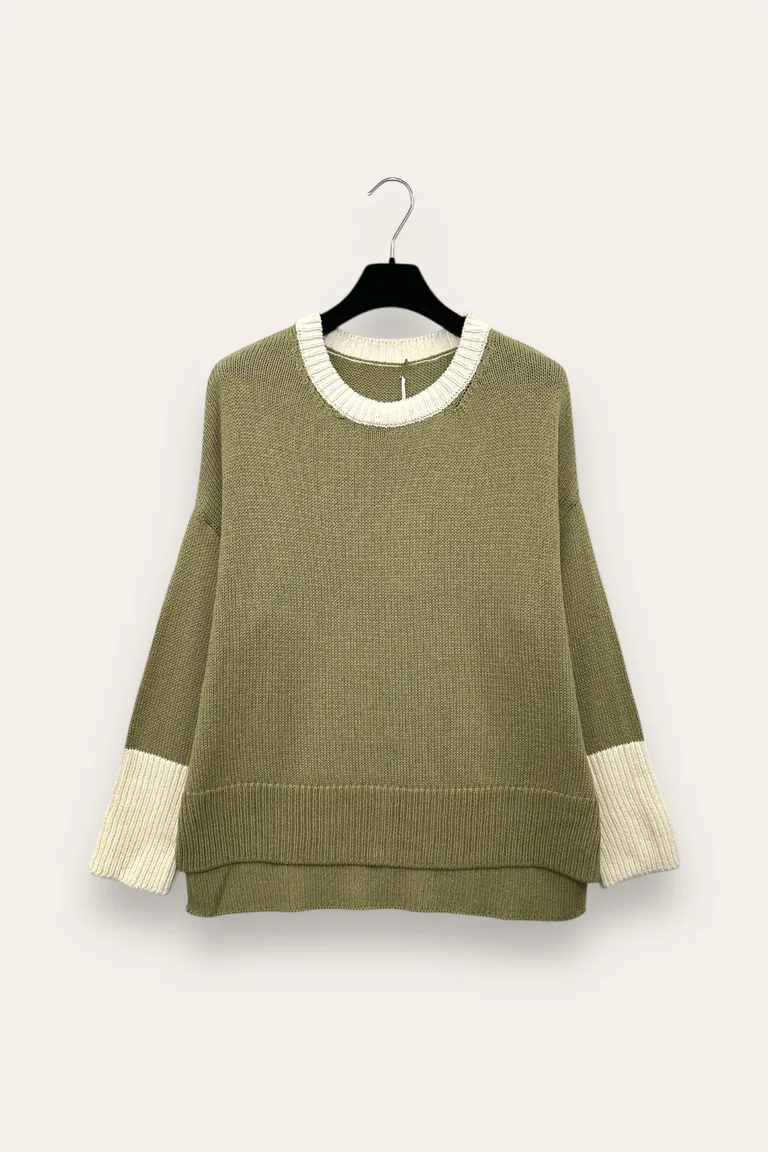 Description Maglia girocollo con profili a contrasto, più lunga dietro