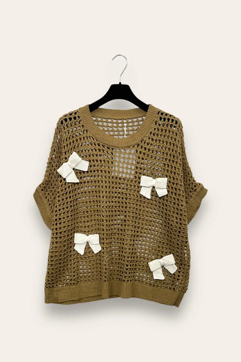 Maglia a rete mezza manica, con fiocchi