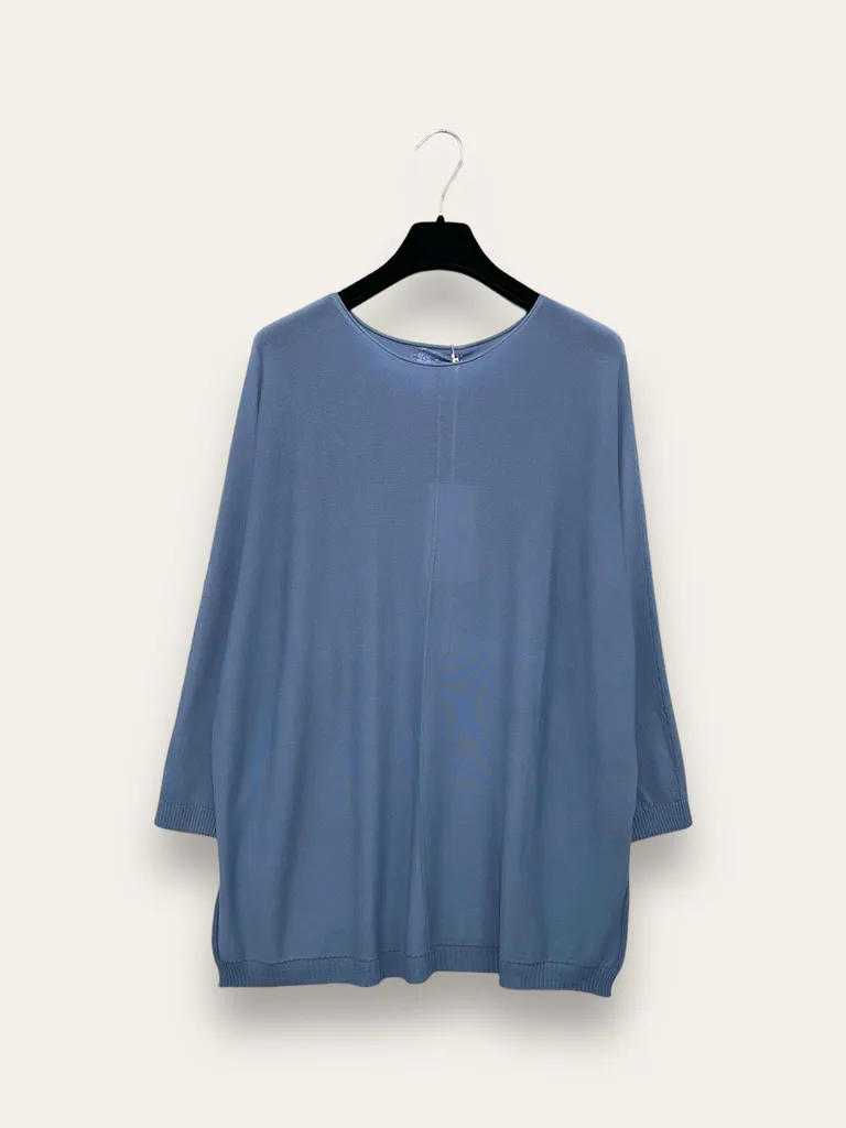 Description Maglia over in viscosa con riga davanti e spacchetti ai fianchi, manica a 3/4